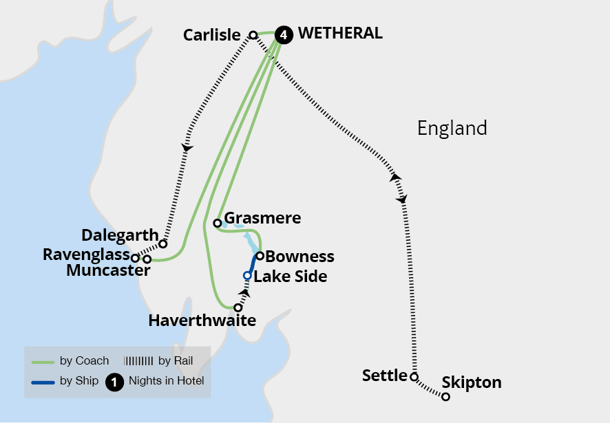 Experience picturesque journeys and leisurely moments in the stunning landscapes of the Lake District. Based in Wetheral, travel on heritage railways, enjoy the striking countryside of the north and delight in the natural beauty of this region. Sail across Windermere to scenic Bowness and the pretty village of Grasmere, once home to William...
