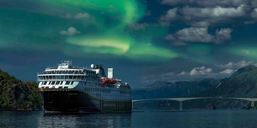 On one of our most unique itineraries Northern Lights on a winter Arctic cruise, you can enjoy a magical Northern Lights cruise through Norway's dramatic fjords and into the Arctic Circle. This special journey offers unforgettable ways to chase the Northern Lights, from standing beneath snow-lit skies to watching from the comfort of a modern cruise ship, you can experience this natural wonder from extraordinary vantage points.
