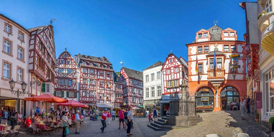 A picture-perfect town along the Moselle, Bernkastel-Kues captivates with its historic medieval market square, colourful buildings and vine-laden slopes. Famous for its wines and cellars, the town has an abundance of charm and beauty, watched over by the majestic Landshut Castle perched high above the valley.