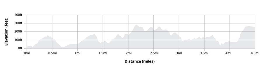 Remember: Some walks may look easier or more challenging than in reality. For instance, walks with a lower elevation range can look steeper than those with a greater elevation difference, when in fact the steepness and total ascent and descent amounts may be much less.