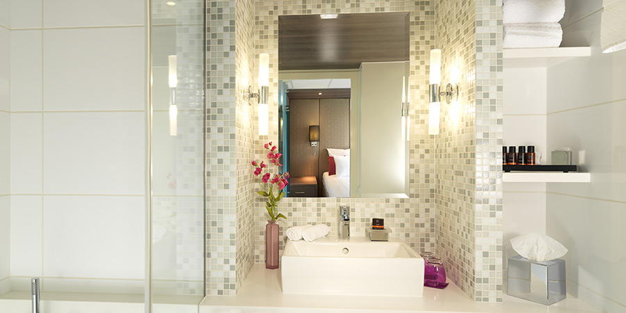 These ensuite cabins are stylish and impressively spacious at 17.5 square metres, with a panoramic window balcony and seating area.