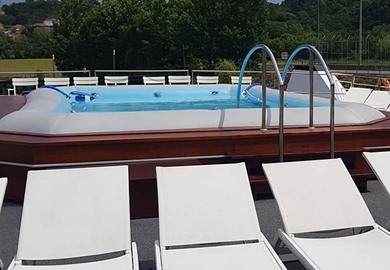 In the evenings, music and dancing takes place in the middle deck lounge, while the bar is found on the middle deck bow, with an outdoor area nearby. The sun deck offers a refreshing pool and sun loungers.