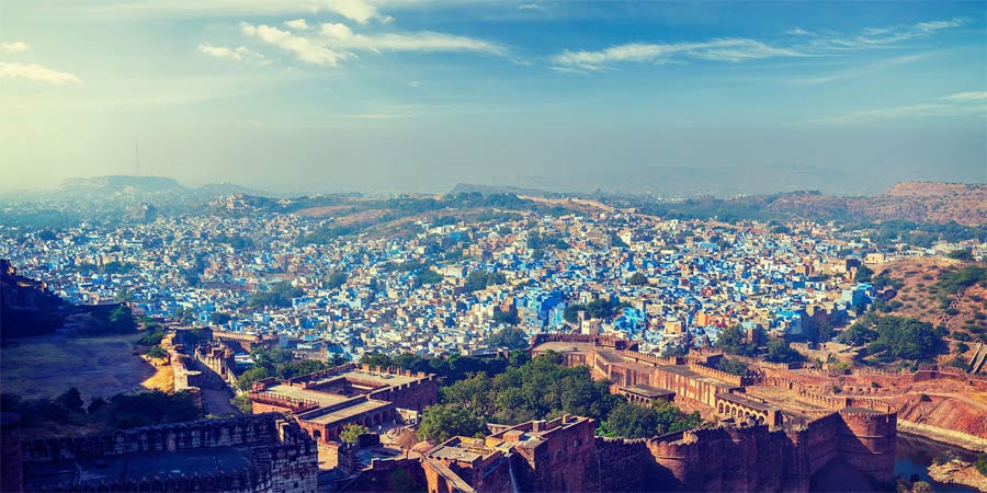 Approaching the vast Thar Desert aboard the Palace on Wheels, the city of Jodhpur shines like a mirage among the arid desert landscape. The fashion for blue-washed houses was a result of the Indian caste system, a strict social hierarchy adhered to by Hindus. Members of the prestigious Brahmin caste would paint their homes blue to distinguish themselves as elite members of Jodhpur's society, though the idea soon became popular enough to spread across the city. Whilst the restrictions of the caste system have somewhat eroded, the trend for blue buildings has persisted, and Jodhpur now boasts the nickname 'The Blue City.'
