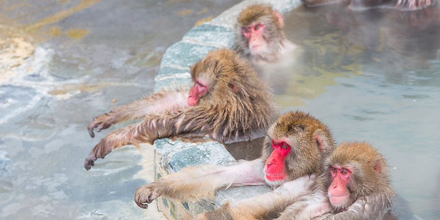Joanna tells us that for over 1,000 years people have been coming to this area to bathe. She's in the town of Shibu Onsen, where, after an obligatory keepsake stamp in her book, she takes an hour or 3 to relax in the steaming waters.