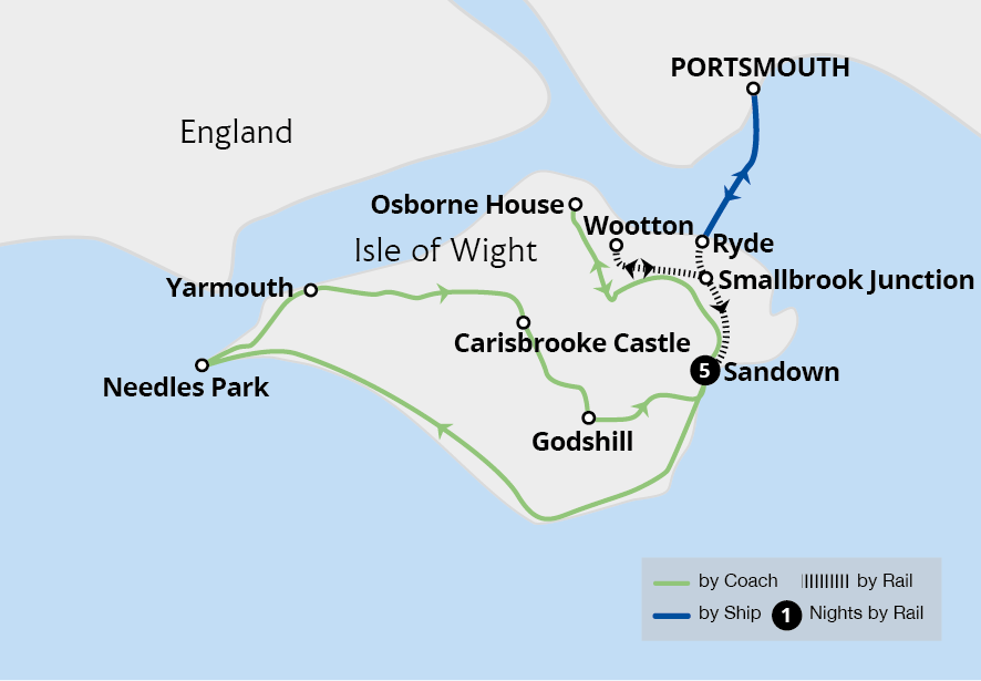 Leaving Sandown, we travel by local rail to Ryde, catching the catamaran back to Portsmouth. Back on the mainland, we say farewell to the Tour Manager and fellow travellers and make our way home - or continue exploring independently.