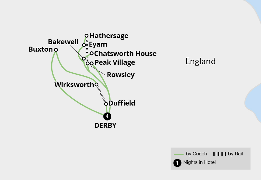 Visit the elegant spa town of Buxton with a local guide and learn about its Roman origins. Explore Bakewell's historic buildings and perhaps sample one of its famous desserts, before visiting the magnificent Chatsworth House and travelling back in time on a nostalgic Peak Rail journey.