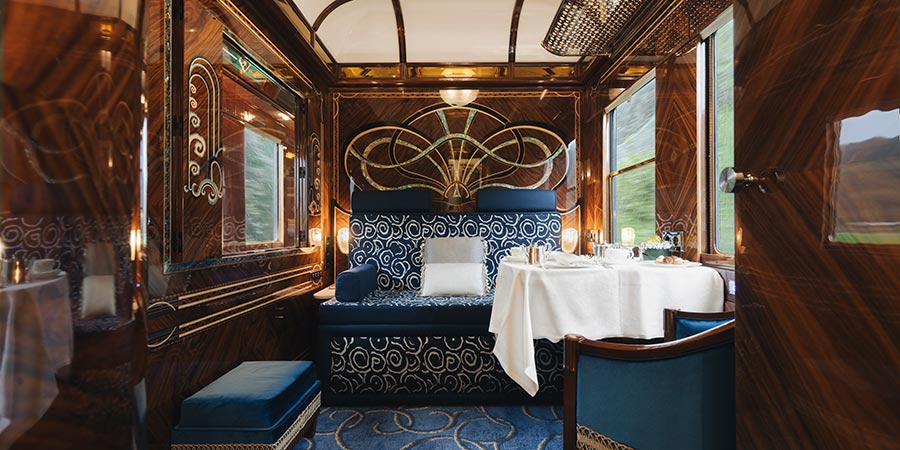 The carriages on this world famous train date from the 1920s and 1930s, the "Golden Age" of travel, and the art-deco details have been thoughtfully restored. Each carriage is uniquely decorated, and each has a unique history. Every detail aboard this luxurious train has been lovingly thought through, including the service from the personal steward who attends to guests in every carriage.
